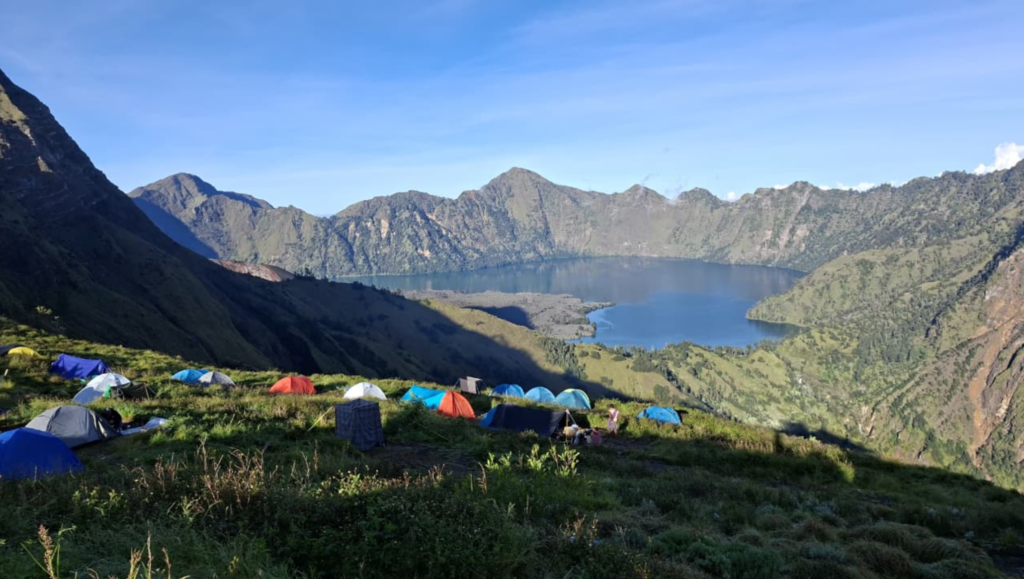 Once you return to the campsite, the porter will prepare a second breakfast, complete with fruits and coffee or tea. After resting for 20 minutes, you will continue the trek down to Segara Anak Lake, which will take around 3 hours. The descent is challenging due to the steep, rocky path. Once you reach the lake, you will spend the night there while enjoying the lake’s peaceful atmosphere and swimming in the natural hot springs to relieve fatigue. Meanwhile, after soaking in the hot springs, we will return to the porter to enjoy lunch. After lunch, we will continue hiking for about 2 hours to Senaru Crater Rim, where we will stay overnight.