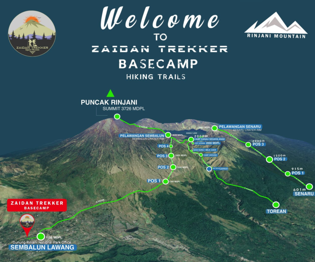 This route combines the vast open savanna landscapes of the Sembalun trail at the beginning of the journey, the peaceful atmosphere along the shores of Segara Anak Lake, and the experience of walking through the tropical forest of the Senaru trail while descending the mountain toward the final gate in Senaru Village.
